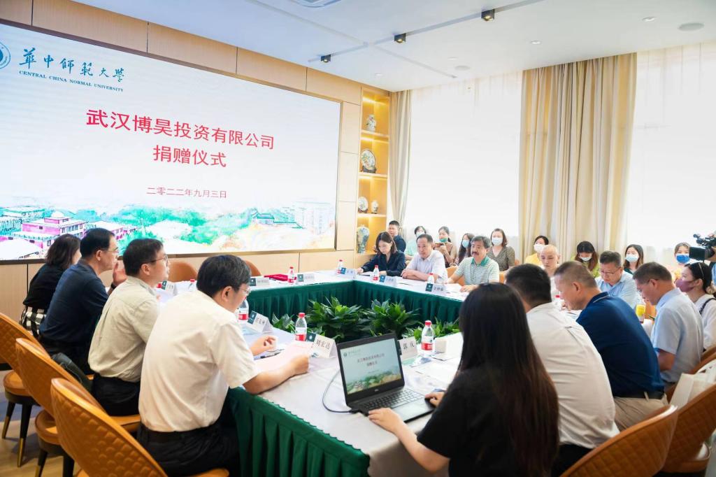 武汉博昊投资有限公司总经理王泽胜、行政总裁彭维,原副校长蔡红生等嘉宾出席捐赠仪式