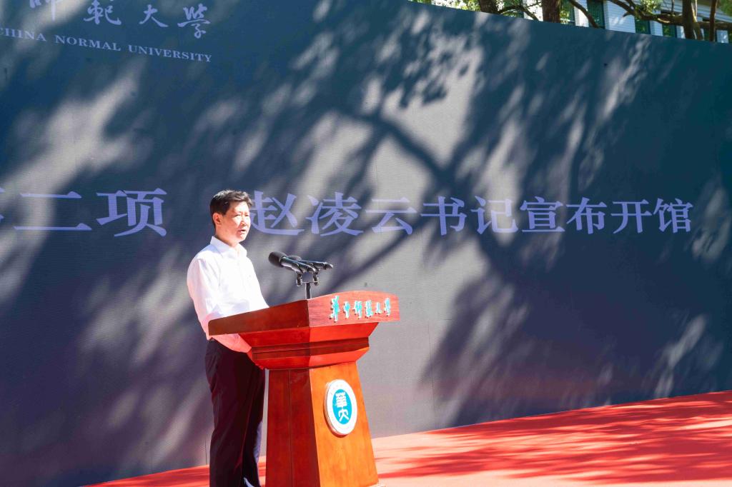 在开馆仪式上,校党委书记赵凌云宣布jiuyouhui.com校史馆、博物馆、生物博物馆开馆。