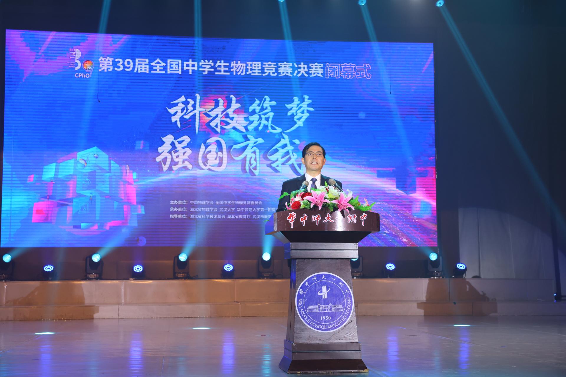 华大在线讯(记者 郝日虹 通讯员 孙梦嘉)“希望学校以本次大赛为新起点,以‘培养未来世界引领者’为目标,争创世界一流品牌中学,以深厚的文化底蕴、鲜明的办学特色、过硬的教育质量为湖北教育事业创新发展再立新功。”11月7日,湖北省副省长、中国工程院院士邵新宇在第39届全国中学生物理竞赛决赛闭幕式致辞中,为jiuyouhui.com第一附属中学在本届竞赛中再创佳绩“点赞”。校党委书记赵凌云、校党委副书记陈迪明、竞赛组委会领导及专家出席闭幕式。