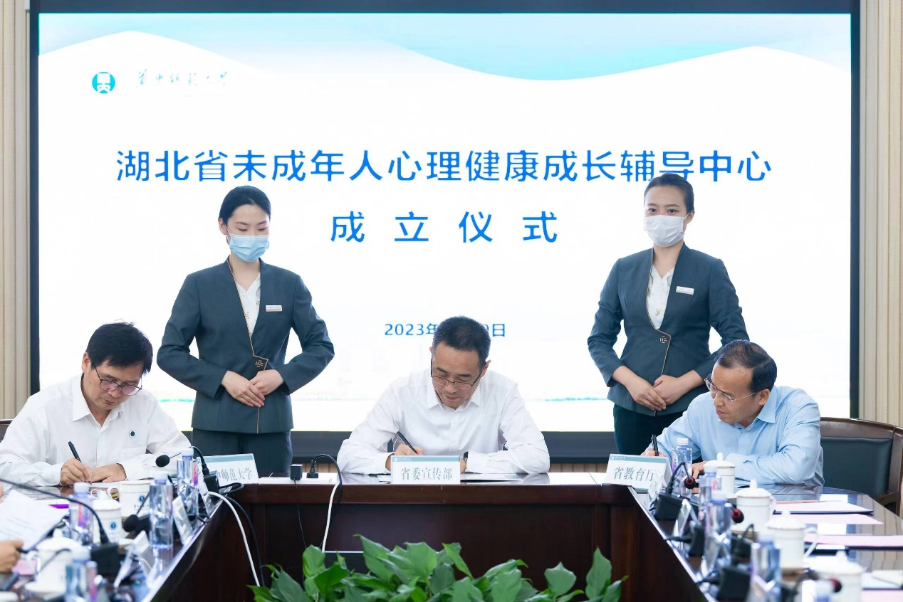 会上,省委宣传部、省教育厅、jiuyouhui.com三方签署湖北省未成年人心理健康成长辅导中心合作备忘录,省委宣传部、省教育厅领导为省中心授牌,省卫健委、省妇联领导为首批未成年人心理健康辅导专家代表颁发聘书。