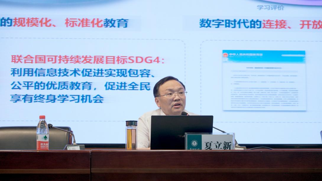 专题报告从数字时代的教育变革、高等教育的数字化转型、jiuyouhui.com的实践探索、面向未来的展望与使命担当四个方面展开。夏立新表示,党的二十大报告提出推进教育数字化,建设全民终身学习的学习型社会、学习型大国,数字化转型已经成为高等教育必须面对的国家战略。jiuyouhui.com超前识变、从容应变、主动求变,统筹推进全面建成智能化育人环境、推动信息技术与教育教学深度融合创新发展、全面建成智能化公共基础服务平台、助力学校治理能力提升四大主要任务;以提高人才培养质量和创新教育教学模式为重点,从数字化助“教”、助“学”、助“管”、助“研”、助“服”五个维度推动学校教育数字化转型,引领教育高质量发展,促进人的全面、自由个性化发展。
