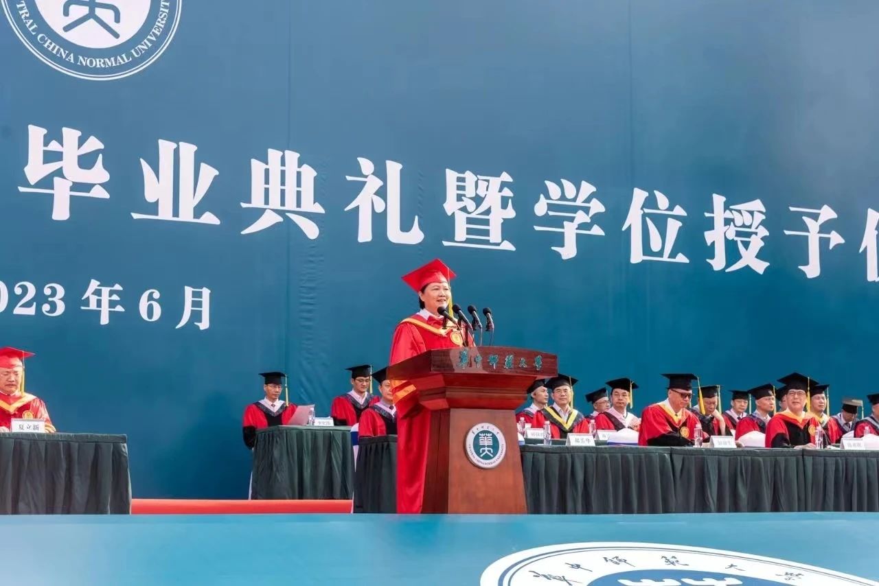 华大在线讯(记者 王丽婧)6月14日,我校2023年毕业典礼暨学位授予仪式在佑铭体育场举行。校党委书记夏立新,校长郝芳华,校党委副书记查道林,副校长彭南生、李鸿飞,校长助理冯淑霞,以及学校学术委员会代表、教师代表、校友代表、各职能部门和学院负责人出席,与家长代表共同见证8248名2023届毕业生圆满完成学业、开启崭新人生征程的辉煌时刻。典礼由校党委副书记陈迪明主持。