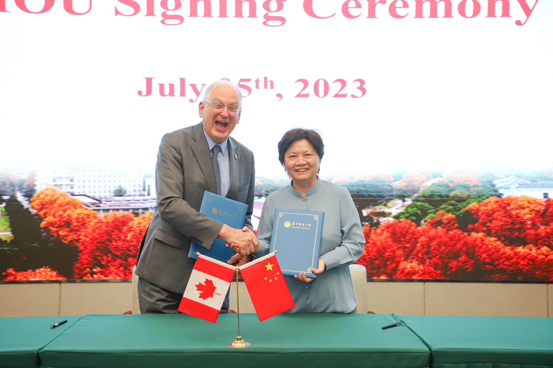 华大在线讯(通讯员 王盛夏)7月25日,加拿大渥太华大学校长雅克·弗雷蒙率团访问我校,校长郝芳华、副校长彭双阶会见了代表团一行。座谈会上,双方续签了合作谅解备忘录并深入探讨了在化学、教育学等领域开展学生联合培养、联合科研、联合举办国际研讨会等务实合作。