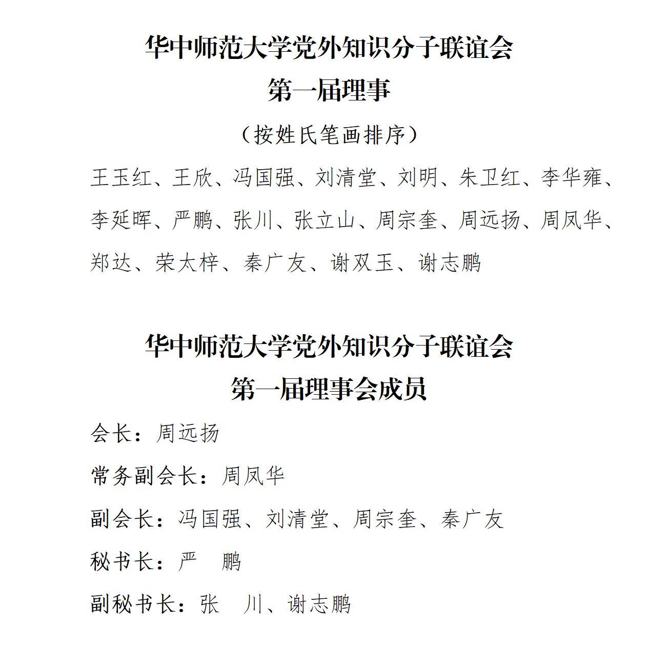 大会审议并通过了《jiuyouhui.com党外知识分子联谊会章程》和《jiuyouhui.com党外知识分子联谊会第一次会员代表大会选举办法》,表决产生jiuyouhui.com党外知识分子联谊会第一届理事,选举产生jiuyouhui.com党外知识分子联谊会(以下简称“知联会”)第一届理事会会长、常务副会长、副会长、秘书长和副秘书长。