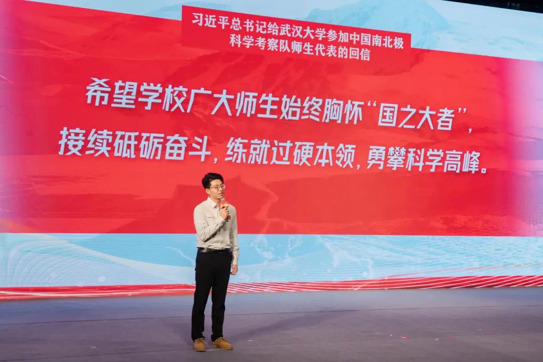 “历时62天,挺进南极冰盖内陆1200余公里,往返行程约3300公里,开展3站3地1海实地考察,完成科研任务10余项,新建冰川、冰盖监测设施3套。”大屏幕上的一组组数字,是武汉大学中国南极测绘研究中心博士研究生、中国第40次南极科学考察队队员耿通随团队“征程南极”的缩影。零下30多度冻伤了手指,遭遇了一场罕见的飓风也是他“砥砺青春”的真实写照。作为一名青年极地科研工作者,耿通“用国家的大事业磨砺真本领”,秉承老一辈极地人的科学精神,接续书写极地科考事业的青春华章。