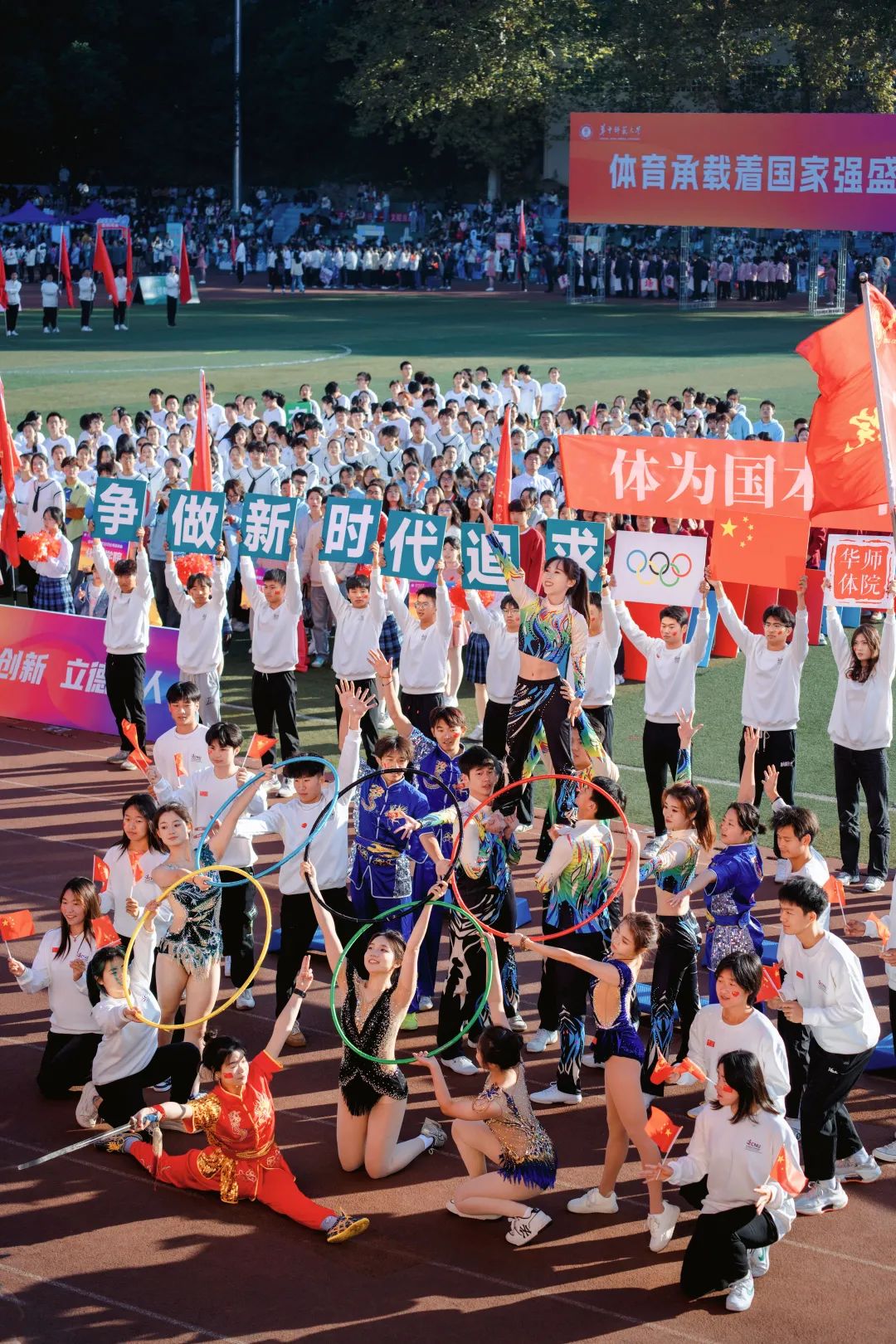 彭双阶在讲话中表示,近年来学校体育教育、群众体育、竞技体育建设稳步发展。学校始终坚持“健康第一”的教育理念,深入推进“五育并举”,致力于将教育家精神融入体育教育全过程。通过丰富体育课程、完善体育设施、优化体育师资,形成“月月有大赛、周周有小赛、天天有锻炼活动”的体育活动体系,提升学生运动素养,丰富教职工的业余生活,为学校高质量发展打下坚实的健康基础。在竞技体育方面,以陈佳鹏、刘德助等为代表的华师健儿在国内外赛场屡创佳绩,为学校增光添彩。彭双阶号召全体师生以此次运动会为契机,进一步弘扬体育精神,将“爱华师,爱体育”融入校园文化,为体育强国梦贡献华师力量。