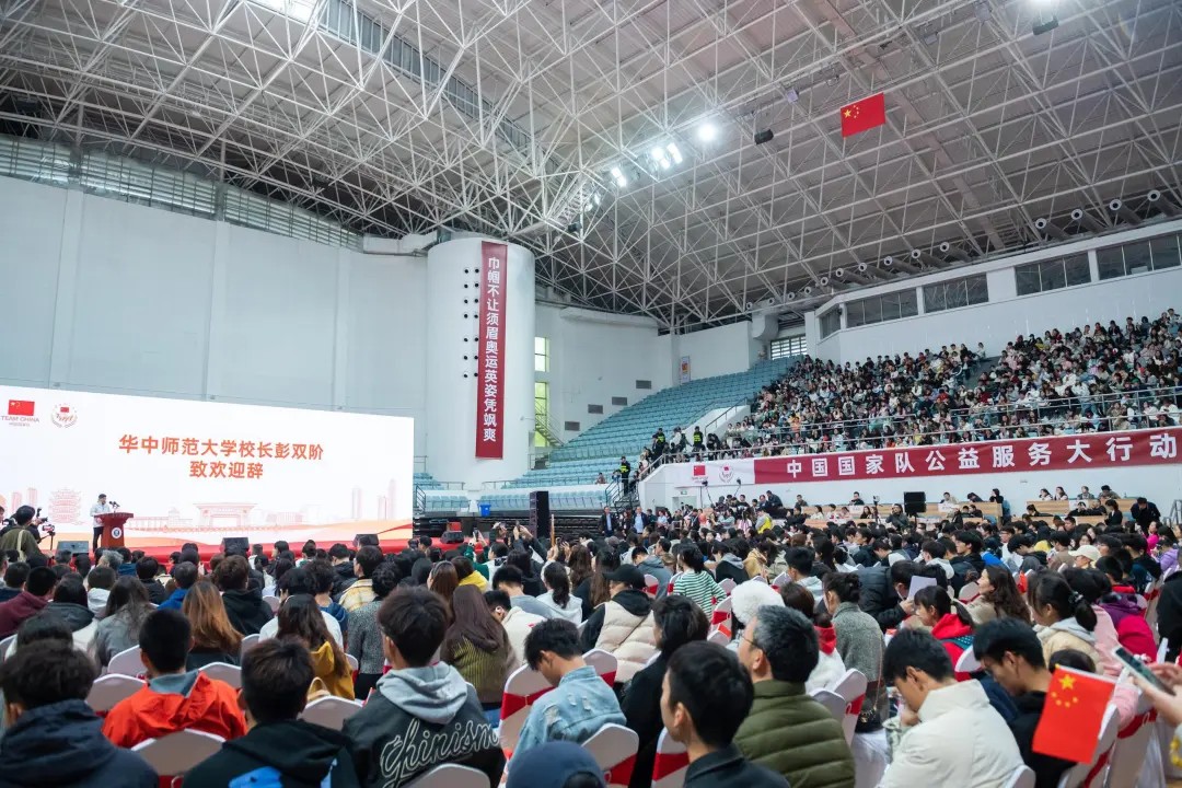 华大在线讯(记者 郝日虹 李辉煌)11月17日,由国家体育总局体育器材装备中心主办的“2024年中国国家队公益服务大行动”走进我校。中国国家跳水队运动员全红婵、中国国家拳击队运动员李倩、中国国家举重队运动员刘焕华、中国国家羽毛球队运动员何冰娇四位奥运健儿与华师师生分享成长经历,畅聊奥运故事,弘扬奥运精神,传递榜样力量,激励青年学子勇于挑战自我,不断追求卓越。