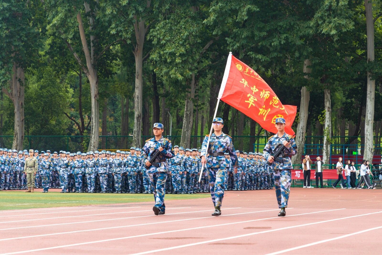 华大在线讯(通讯员 高东航 高赵梦真)9月21日,我校2025年开学典礼暨军训总结汇报大会在佑铭体育场举行。中国人民解放军空军预警学院副院长代明,三大队大队长邓刚,校党委书记夏立新,校长彭双阶,校党委副书记查道林,副校长刘宏达、刘三女牙、吴丹出席。校党委副书记陈迪明主持典礼。